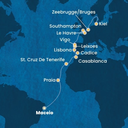 Brasile > Isole Canarie > Marocco > Spagna > Portogallo > Francia > Gran Bretagna > Belgio > Germania