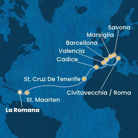 Repubblica Dominicana > Antille > Isole Canarie > Spagna > Francia > Italia